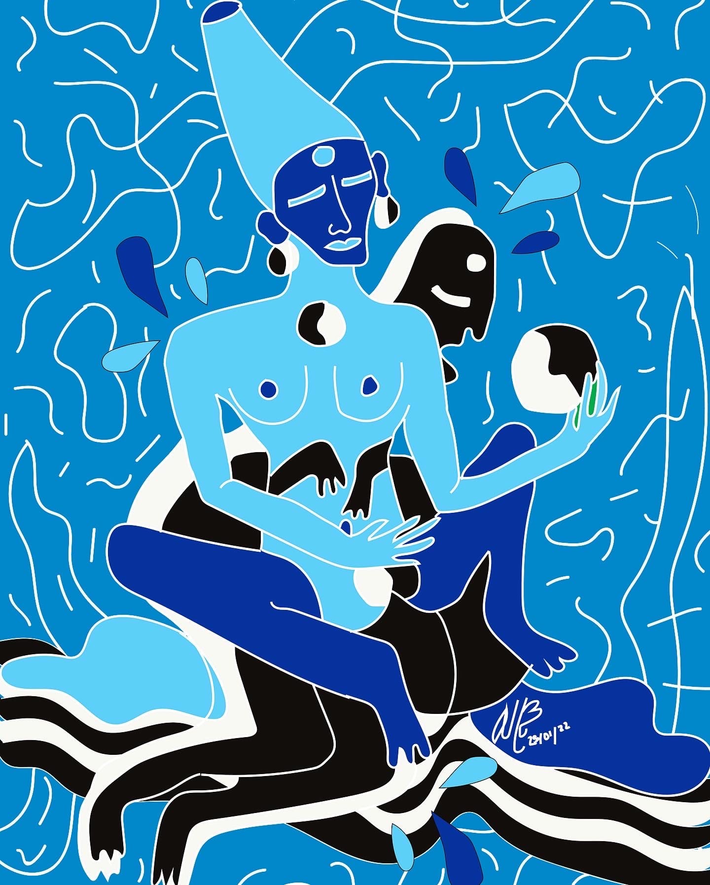 “El Renacimiento de Oro” (2023) es una obra digital que simboliza una semilla sagrada que nace de la oscuridad, muere y renace cada día, expandiendo su luz hasta convertirse en un ser de oro.