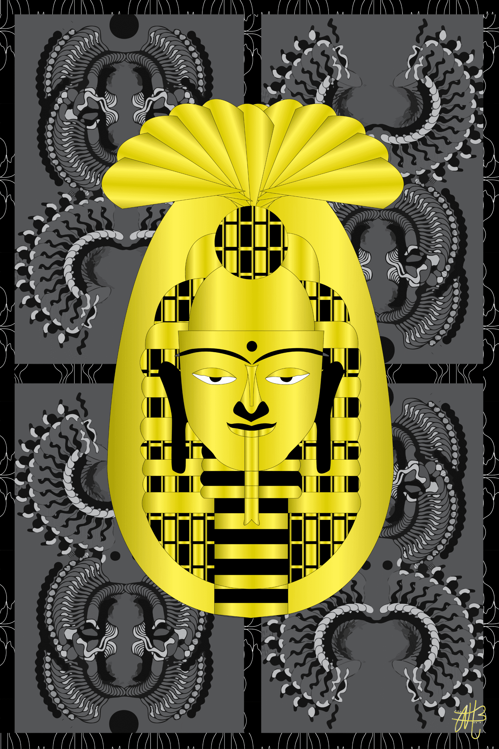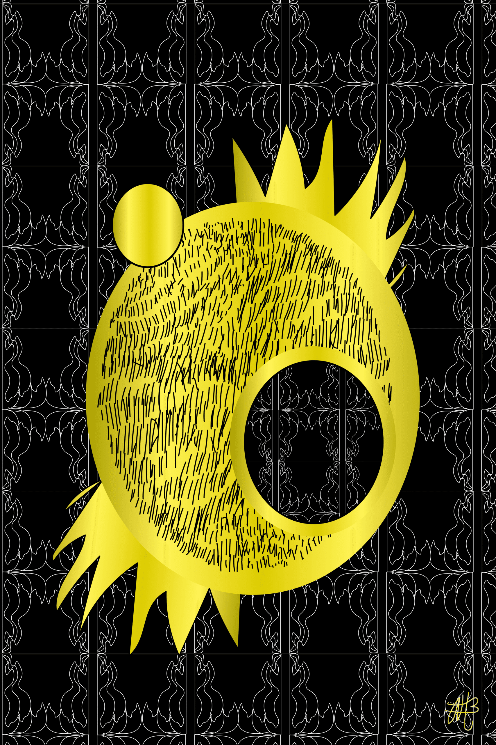 “The Golden Renaissance” is a digital artwork symbolizing a sacred seed born from darkness, dying and rebirthing each day, expanding its light to become a being of gold.